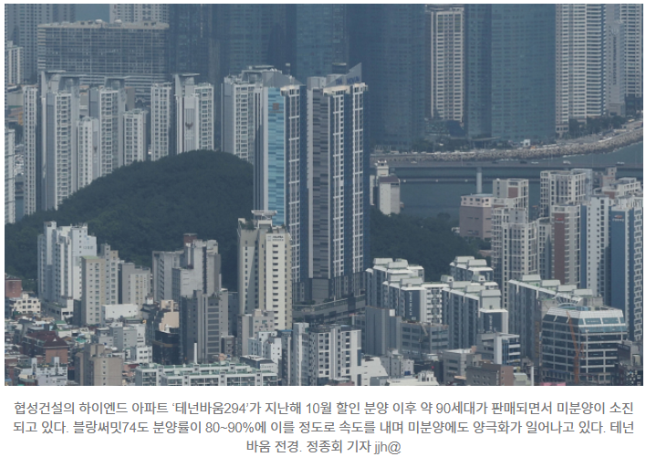 광안리 오션뷰를 갖춘 테넌바움 294, 북항 조망이 가능한 블랑써밋 74 같은 단지는 미분양 탈출에 성공하는 반면, 입지 경쟁력이 낮은 곳은 여전히 고전을 면치 못하는 상황입니다.
