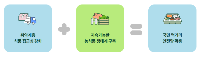 정부는 이 제도를 통해 취약계층의 식품 구매력을 향상 시킬 뿐만 아니라, 국산 농산물 소비 기반을 확대 하여 지속 가능한 농식품 소비 체계를 구축하는 데 기여하고자 합니다.